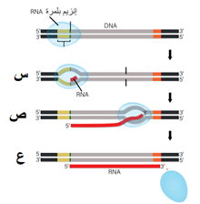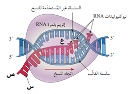 33- الشكل المجاور يمثل مرحلة استطالة RNA ماذا يمثل الرمز س ، ص ، ع بالترتيب