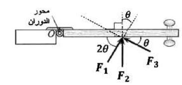 .8يوضح الشكل المجاور منظرًا علويًا لباب تؤثر فيه ثلاث قوى (F1 , F2 , F3) متساوية المقدار في الموقع نفسه. العلاقة الصحيحة بين عزوم هذه القوى حول محور الدوران ( 0) هي: