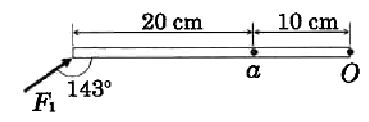 .9 قضيب فلزي مهمل الكتلة، طوله (( 30 cm قابل للدوران حول محور ( ( O كما في الشكل المجاور، تؤثر فيه قوة N)50 = F1). حتى يصبح القضيب في حالة اتزان دوراني، يجب أن تؤثر فيه عموديًّا عند النقطة (a) قوة (F2)مقدارها بوحدة نيوتن (N) واتجاهها :