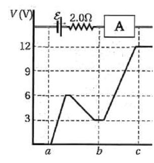 .12مثلت تغيّرات الجهد في جزء من دارة كهربائية بيانيًا، كما في الشكل المجاور. بالاعتماد على بيانات الشكل فإن العنصر (A) بين النقطتين (C) ومقدار التيار المار فيه، هما: