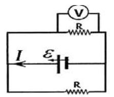 .14اعتمادًا على الشكل المجاور وبياناته، وبإهمال المقاومة الداخلية للبطارية فإن قراءة الفولتميتر (v)هي: