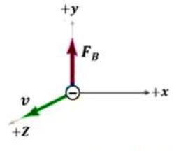 .28يتحرك أيون سالب باتجاه محور (+y) داخل غرفة مفرغة فيها مجال كهربائي منتظم باتجاه (-x) ، كما في الشكل. في أي اتجاه يجب توليد مجال مغناطيسي بحيث يمكن أن يؤثر في الجسيم بقوة تجعله لا ينحرف عن مساره؟