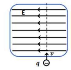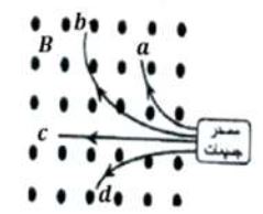 .23في الشكل المجاور المجال المغناطيسي المؤثر في الجسيم المشحون يكون نحو