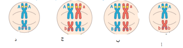 13- في الشكل التالي , ما أنواع الجاميتات التي سوف تنتج في حالة عدم حدوث عبور جيني ؟