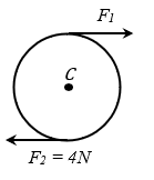11- قرص نصف قطره وعزم القصور الذاتي له يدور بسرعة زاوية أثر عليه عزم دوران ناتج من قوتين مماسيتين على محيطه فأصبحت سرعته الزاوية خلال , بناءً على الشكل المجاور، فان: مقدار القوة بوحدة النيوتن تساوي