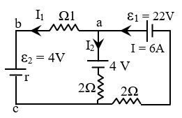 في الدائرة الكهربائية المجاورة، اذا علمت ان فرق الجهد بين طرفي المصدر الكهربائي يساوي , فان