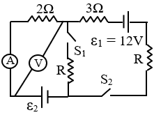 في الدارة الكهربائية المجاورة، عندما كان المفتاح فقط مغلقاً كانت قدرة البطاريتين معاً تساوي وقراءة الاميتر تساوي ، فان :