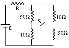 19-في الدائرة الكهربائية المجاورة، عند اغلاق المفتاح فان المقاومة المكافئة في الدارة تساوي من المقاومة المكافئة قبل الاغلاق. فان مقدار المقاومة بوحدة الاوم تساوي