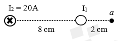 20- يبين الشكل المجاور موصلين طويلين متوازيين عموديين على مستوى الصفحة فاذا كانت النقطة هي نقطة انعدام المجال المغناطيسي فيكون اتجاه ومقدار التيار بوحدة أمبير في الموصل الاول