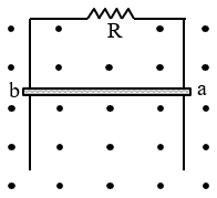 28- موصل كتلته وطوله L , ينزلق تحت تأثير وزنه للأسفل بسرعة ثابتة في مستوى رأسي على سكة موصلة في مجال مغناطيسي منتظم عمودي على الصفحة للخارج , ان مقدار المجال المغناطيسي المنتظم تعطى بالعلاقة :