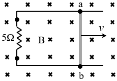 29- موصل طوله متصل على التوالي مع مقاومة مقدارها مغمور في مجال مغناطيسي منتظم عمودي على الصفحة للداخل ويتحرك نحو اليمين بسرعة ثابتة بتأثير قوة خارجية مقدارها باتجاه اليمين فان: مقدار واتجاه التيار الحثي المتولد في الموصل بالامبير يساوي