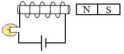 30- في الشكل المجاور، ماذا يحدث لإضاءة المصباح الكهربائي عند تقريب المغناطيس من الدارة الكهربائية