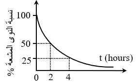 47- يوضح الرسم البياني المجاور العلاقة بين النسبة لعينة من عنصر مشع والزمن. ان ثابت الاضمحلال للعنصر يساوي