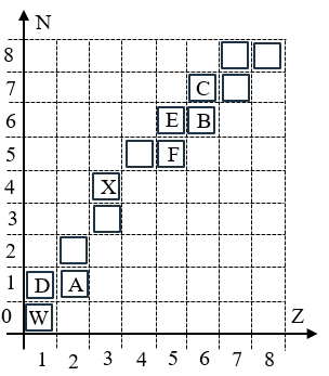 معتمداً على الشكل المجاور الذي يبين جزءأً من منحني الاستقرار، وكل مربع يعبر عن نواة مستقرة.