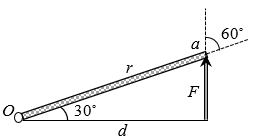 8- يبين الشكل منظراً علوياً لباب قابل للدوران حول محور , ثؤثر فيه قوة أفقية , عند النقطة , معتمداً على الشكل وبياناته، فان عزم هذه القوة يساوي
