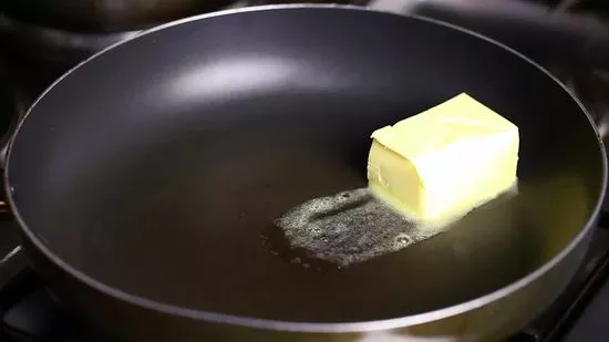 قامَتْ أُمّي بَتَسْخينِ الزُّبدَةُ في إِناءٍ عَلى الْغازِ