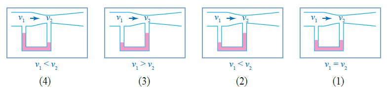 اي الاشكال الآتية يمثل ما يحدث للمائع عند جريانه في مقياس فنتوري؟