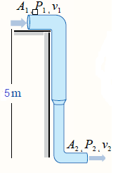 في الشكلِ التالي، فإذا علمتُ أنَّ مساحةَ مقطعِ الطرفِ العلويِّ للأنبوبِ ، وضغطَ الماءِ